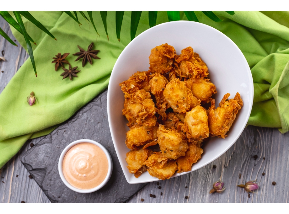 Fresh crispy lettuce, carrots, and tomatoes. Topped with our popular crispy chicken katsu and your choice of creamy ranch dressing or Sharky's katsu dressing