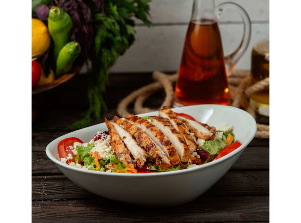 Fresh crispy lettuce, carrots, and tomatoes, topped with our delicious perfectly grilled BBQ chicken. Served with your choice of creamy ranch dressing or lemon vinegarette