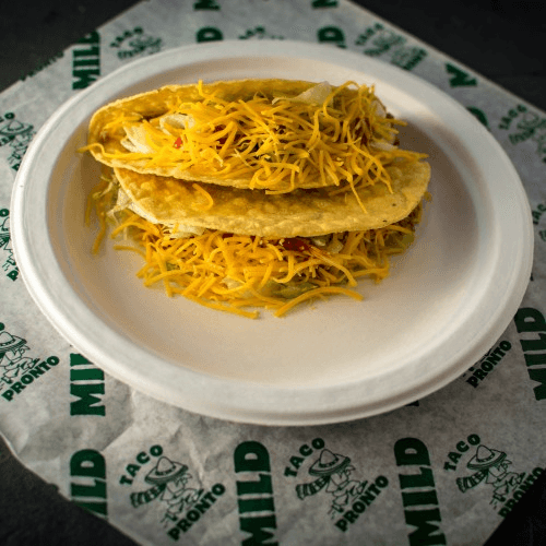6inch fried corn tortilla,Ground beef,Lettuce,Shredded cheese.